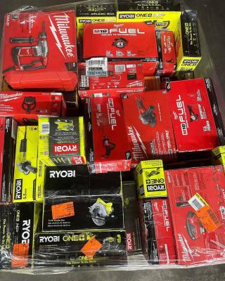 Drill Drivers – 18 Impact Drivers – 15 Circular Saws – 10 Reciprocating Saws – 8 Angle Grinders – 12 Jigsaws – 8 Sanders – 8 Rotary Hammers – 6 Heat Guns – 6 Pressure Washers – 4 Cordless Fans – 6 LED Lights – 10 Inflators – 6 Multi-Tools – 7 Accessories: Batteries – 16 Chargers – 4 Total: 150 units Net Weight: ~800 lbs Gross Weight: ~950 lbs