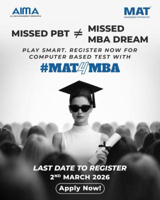 Management Aptitude Test (MAT) is a standardised test being administered since 1988 to facilitate Business Schools (B-Schools) to screen candidates for admission to MBA and allied programmes. Govt. of India, Ministry of Education approved MAT as a national level test in 2003. MAT is now a new-age entrance test with streamlined exam sections, updated content focus, and concise exam duration. The largest test of its kind in the nation, MAT will continue to be your passport to over 600 B-Schools across India. For More Information, Please Visit Our Website:- https://www.aima.in/content/testing-and-assessment/mat/mat »
