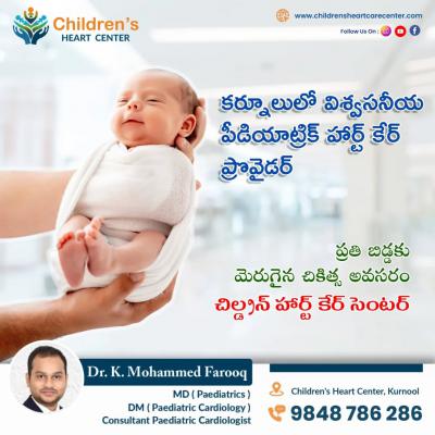 A trusted pediatric cardiologist in Kurnool providing specialized diagnosis and treatment for heart conditions in infants, children, and adolescents. » Serving families across Nandyal, Anantapur, and Kadapa, the center offers advanced pediatric cardiac evaluations, echocardiography, and personalized treatment plans to ensure the best heart health outcomes for children across Andhra Pradesh.